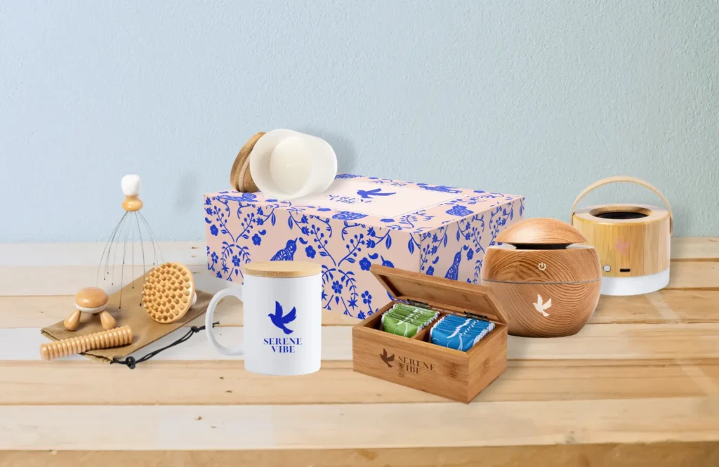 En el merchandising, esto puede tomar la forma de productos personalizables como camisetas que los clientes pueden diseñar ellos mismos o regalos que se ajustan al contexto y necesidades del usuario, como kits de bienestar personalizados para eventos corporativos.