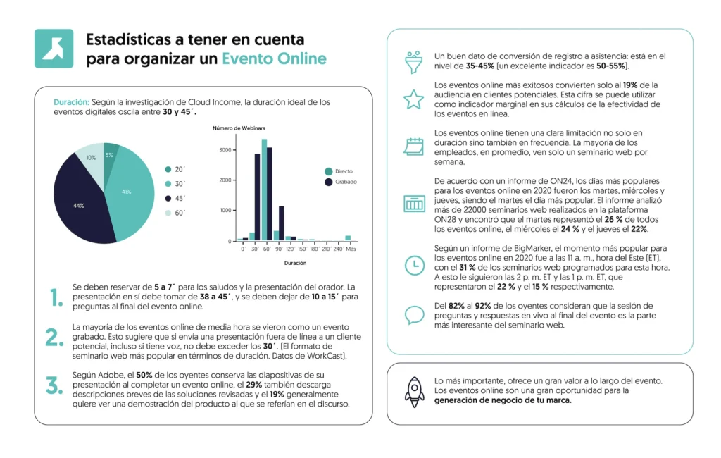 Antes de llegar a este tipo de soluciones, veamos qué datos debes de considerar para organizar con éxito tu evento digital.